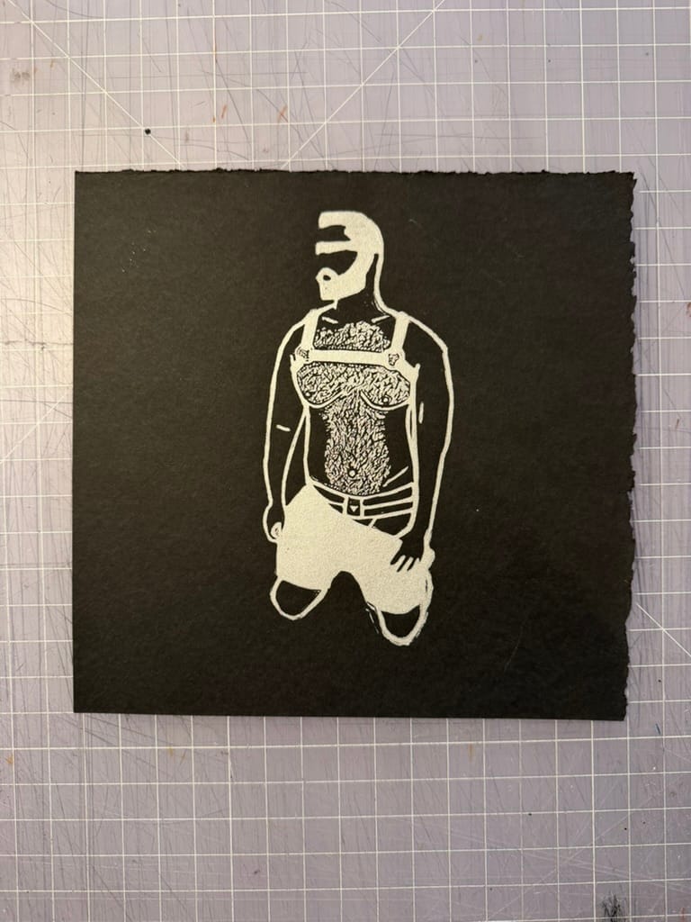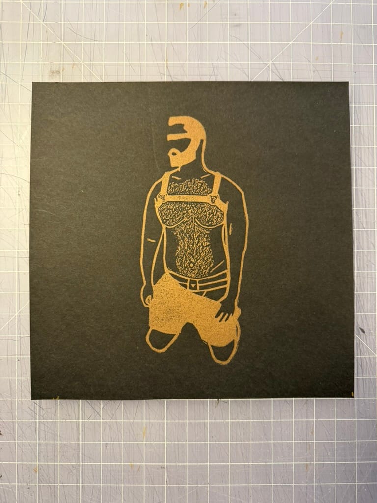 Linocut relief print. The piece feels...pretty self explanatory. Also printed in silver and gold metallic inks on black paper. Printed at Shoestring Press in Brooklyn, NY.